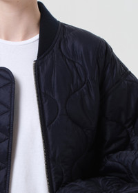 The Isla Quilted Jacket features a relaxed silhouette with subtle volume through the sleeves and a clean zip-front closure. Designed in a deep navy hue and crafted from ultra-smooth, silk-like nylon, it’s a refined outerwear staple with everyday ease. Wear it over denim or layered knits for a modern, laid-back look. This fit is true to size. Looks Like: Relaxed dark navy quilted jacket with zipper front closure Feels Like: Ultra-smooth, silk-like nylon MORE DETAILS Model is 5'10" and wearing a size Small Fabric: 100% Shearling Care Instructions: Machine wash cold inside out with like colors. Do not bleach. Tumble dry low. Made in Vietnam with imported materials A5090-IKN