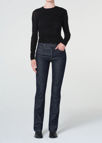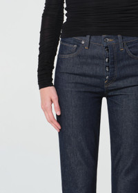 A high-rise skinny with a slim fit and exposed fly. Crafted from soft, lightweight stretch denim, it has a true-to-size fit and a clean, stacked silhouette. The deep indigo rinse keeps the look crisp and modern, ideal paired with structured tops or relaxed knits for a sleek finish. This fit is true to size. Looks Like: Dark deep rinsed indigo denim pant with exposed fly Feels Like: Comfort stretch, lightweight denim with a super soft hand to hold its shape MORE DETAILS Closure: Button Fly Rise: 10 3/4" Inseam: 33 1/2" Leg Opening: 15 1/4" Model is 5'10" and is wearing a Size 27 Fabric: 99% Regenerative Cotton, 1% Elastane Care Instructions: Machine wash cold inside out with like colors. Do not bleach. Tumble dry low. Made in Turkey with imported materials A296-1858-RENI