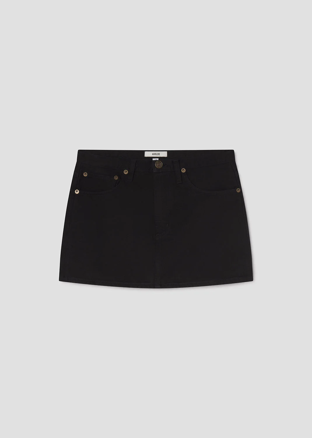 The Keira Mini Skirt delivers a clean, modern take on a classic denim essential. Designed in a flat rinsed-out black wash, it features a skinny waistband, classic five-pocket styling, and a mini length that feels effortlessly polished. Crafted from non- stretch cotton denim with a soft hand feel, it offers structure and all day wearability while maintaining an elevated look. This fit is true to size. Looks Like: Flat rinsed out black mini skirt with skinny waistband Feels Like: Rigid, non stretch cotton denim with a soft hand for all day wearability MORE DETAILS Closure: Zipper Fly Waist: 32 1/2" Length: 12 1/2" Model is 5'10" and is wearing a Size 27 Fabric: 67% Organic Cotton, 22% Lyocell, 11% Post Consumer Recycled Cotton Care Instructions: Machine wash cold inside out with like colors. Do not bleach. Tumble dry low. Made in Turkey with imported materials A3071-1683-CURB