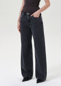 The Keira Jean is a low-rise, baggy silhouette with a relaxed full-length leg and structured hip. In Symbolic, it's offered in a medium washed-out black with soft marbling and whiskering for a broken-in look. Pair with a sleek tank or slouchy knit to play with proportion. This fit is true to size. Looks Like: Medium washed out black denim pant Feels Like: Non stretch, weightless denim washed down for a super soft feel MORE DETAILS Closure: Zipper Fly Rise: 11 1/4" Inseam: 31" Leg Opening: 23" Model is 5'10" and is wearing a Size 27 Fabric: 100% Conventional Cotton Care Instructions: Machine wash cold inside out with like colors. Do not bleach. Tumble dry low. Made in Turkey with imported materials A267-1818-SYBL