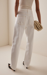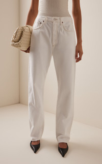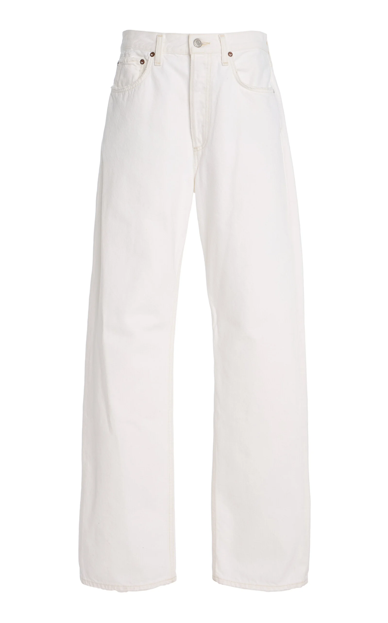 Inspired by the classics, AGOLDE offers the authenticity and rarity found in discovering the perfect vintage pair. With a focus on sustainability and comfort, its thoughtfully considered designs are personally and carefully tested to ensure each fit and fabric meets the highest standards. Featuring a high-rise waist into a relaxed top block with a straight leg and a vintage-inspired extended inseam. PRODUCT DETAILS - Pre-Fall '25 - Button fly fastening - Composition: 100% regenerative cotton - Designer color: Milkshake - Machine wash - Made in the USA SIZE & FIT - Our model is wearing a size 26 - Model is 5'11" with a 30" bust, 24" waist, and 34" hip - Designed for a straight fit