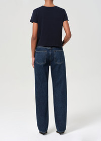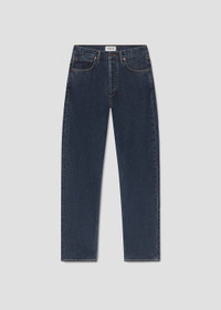 A fresh take on a classic silhouette. The Kelly features a high-rise waist, relaxed top block, and a full-length straight leg for a flattering, vintage-inspired shape. Crafted from rigid, non-stretch regenerative cotton in a dark-to-medium indigo wash, Pendulum is finished with soft marbling for a broken-in, versatile look. The heavyweight denim offers structure with a soft hand for lasting comfort. Pair with a tucked-in tee and loafers for a casual polish, or dress it up with a crisp blazer and boots. This fit is true to size. Looks Like: Dark to medium indigio denim pant Feels Like: Rigid, non stretch cotton denim with a soft hand for all day wearability MORE DETAILS Closure: Button Fly Rise: 12 1/8" Inseam: 32" Leg Opening: 17" Model is 5'10" and is wearing a Size 27 Fabric: 100% Regenerative Cotton Care Instructions: Machine wash cold inside out with like colors. Do not bleach. Tumble dry low. Made in Turkey with imported materials A199B-1206-PNDLM