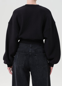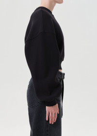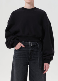 The Kit is a relaxed, cropped silhouette featuring ribbed trims and a classic crew neckline. Crafted from 100% cotton, this black top offers effortless style with a comfortable fit. For summer, style it with high-rise denim shorts and sandals for a laid-back, casual look, or pair it with a flowy skirt and sneakers for an easy, chic vibe. This fit is true to size. Looks Like: Dark washed black cropped crewneck sweatshirt Feels Like: Breathable soft cotton fleece with just the right amount of stretch MORE DETAILS Model is 5'10" and wearing a size Small Fabric: 100% Cotton Care Instructions: Machine wash cold. Made in Portugal with imported materials A7348-WSDB
