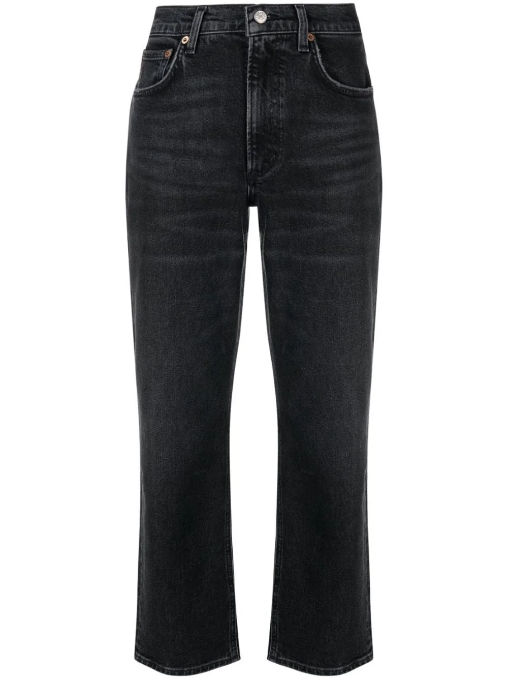 Kye cropped straight-leg jeans Crafted in organic cotton with a hint of stretch, AGOLDE’s Kye jeans feature a mid-rise waist and cropped, straight leg – a classic combination resulting in a premium and versatile wardrobe staple. Highlights - Dark grey - Organic cotton blend - Dark wash - Mid-rise - Whiskering effect - Cropped leg - Front button and zip fastening - Classic five pockets Imported Composition Organic Cotton 99%, Spandex/Elastane 1% SIZE & FIT Model measurements Height 5 ft 10 in(1.79 m) Bust/Chest 31.1 in(79 cm) Hips 35.03 in(89 cm) Waist 24.01 in(61 cm) FittingInformation Designed for a straight-leg fit, these jeans allow for a close fit at the waist and an unrestricted and comfortable fit over the leg Cropped in length Constructed from stretch denim, this piece offers a stretch fit with durability This piece fits true to size – take your usual size Washing instructions Machine Wash
