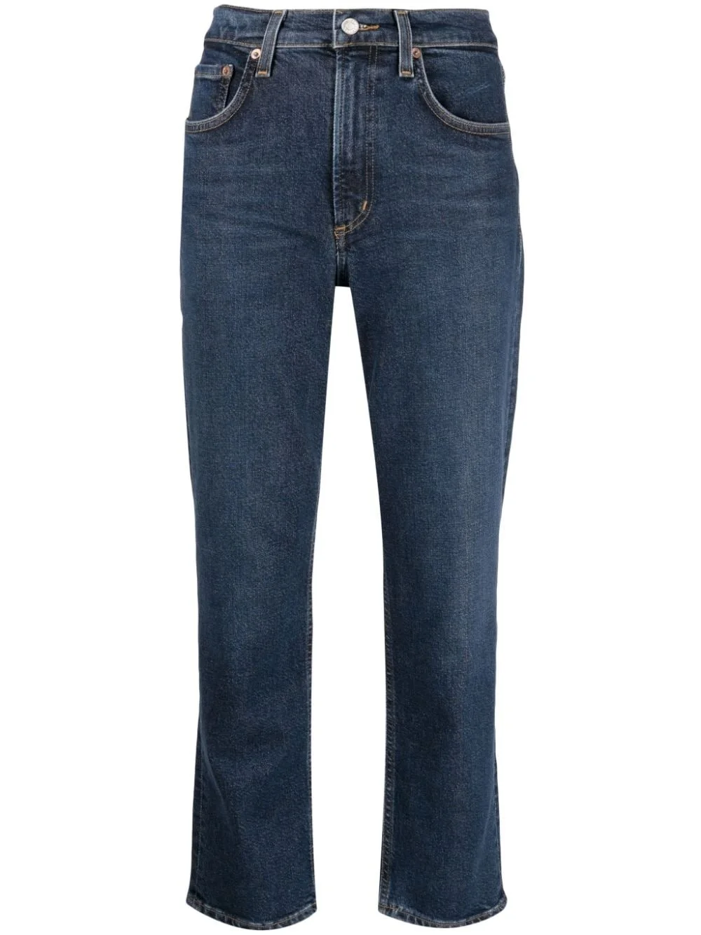 Kye straight-leg cropped jeans Highlights - Navy blue - Cotton blend - Denim - Dark wash - Straight leg - Mid-rise - Cropped leg - Belt loops - Concealed fly and button fastening - Classic five pockets Imported Composition Cotton 59%, Ecovero 40%, Elastane 1% SIZE & FIT Model measurements Height 5 ft 10 in(1.79 m) Bust/Chest 31.49 in(80 cm) Hips 34.64 in(88 cm) Waist 22.83 in(58 cm) FittingInformation Designed for a straight-leg fit, these jeans allow for a close fit at the waist and an unrestricted and comfortable fit over the leg Constructed from stretch denim, this piece offers a stretch fit with durability This piece fits true to size – take your usual size Washing instructions Machine Wash