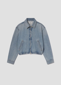The Nile Jacket is a denim bomber crafted from regenerative cotton, offering a sleek, modern design with a two-way zipper. Part of the Weightless Collection, it’s designed to be lightweight yet durable, perfect for layering. Style it back to denim for a coordinated look or pair it with a simple tee and sneakers. This fit is true to size. Looks Like: Light indigo denim bomber jacket with collar and marbling detail Feels Like: Weightless, non stretch denim cotton with a soft finish MORE DETAILS Body Length: 22" Chest: 43" Sweep: 32" Shoulder to Shoulder: 20 3/4" Sleeve Length: 22 3/4" Model is 5'10" and wearing a size Small Fabric: 100% Regenerative Cotton Care Instructions: Machine wash cold. Made in USA with imported materials A5084-HKI