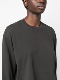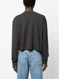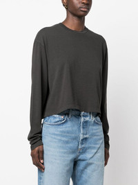 long-sleeve crop top Highlights - Moss green - Organic cotton - Jersey knit - Crew neck - Long sleeves - Straight hem - Cropped Made in United States Composition Organic Cotton 100% SIZE & FIT Model measurements Height 5 ft 10 in(1.77 m) Bust/Chest 32.28 in(82 cm) Hips 35.03 in(89 cm) Waist 25.19 in(64 cm) FittingInformation Designed to be unstructured, offering a loose fit throughout Made from a midweight non-stretch fabric, this piece offers minimal elasticity when worn Washing instructions Machine Wash