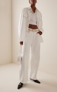 Inspired by the classics, AGOLDE offers the authenticity and rarity found in discovering the perfect vintage pair. With a focus on sustainability and comfort, its thoughtfully considered designs are personally and carefully tested to ensure each fit and fabric meets the highest standards. The 'Lotta' shirt has an oversized fit made from denim using a blend of organic cotton and sustainable Refibra Lyocell. PRODUCT DETAILS - Spring '25 - Button fastening - Composition: 60% organic cotton, 40% REFIBRA™ Lyocell - Designer color: Milkshake - Machine wash - Made in the USA SIZE & FIT - Our model is wearing a size Small - Model is 5'11" with a 32" bust, 23" waist, and 35.5" hip