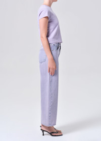 The Low Curve Jean Crop features a relaxed, tapered leg and slouchy fit that sits low on the hips, now finished with a cropped 27.5" inseam for a balanced, modern proportion. Designed in a medium overdyed lavender wash, it adds a fresh tonal twist to a vintage-inspired silhouette. Crafted from rigid non stretch denim made from a regenerative cotton blend, it offers a soft hand feel and all day comfort while maintaining its structured shape. This fit is true to size. For a longer inseam, shop the Low Curve Jean. Looks Like: Medium overdyed lavender denim pant Feels Like: Rigid, non stretch denim made from a blend of cotton to give a soft hand feel for all day comfort MORE DETAILS Closure: Zipper Fly Rise: 11 1/2" Inseam: 27 1/2" Leg Opening: 21" Model is 5'10" and is wearing a Size 27 Fabric: 67% Regenerative Cotton, 22% Lyocell, 11% Post Consumer Recycled Cotton Care Instructions: Machine wash cold inside out with like colors. Do not bleach. Tumble dry low. Made in Turkey with imported materials A283-1535-ARU