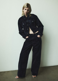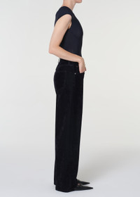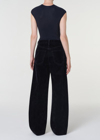 The Low Curve Jean is a relaxed tapered pant with a mid-rise waist. Cut from plush textured velvet, it offers a luxurious feel and pairs effortlessly with fitted tops or layered pieces. This fit is true to size. For a shorter inseam, shop the Low Curve Crop Jean Looks Like: Luxurious multi-dimensional dark deep navy velvet pant Feels Like: Plush yet textured super soft velvet MORE DETAILS Closure: Zipper Fly Rise: 11 3/4" Inseam: 31" Leg Opening: 21" Model is 5'10" and is wearing a Size 27 Fabric: 84% Cotton, 16% Viscose Care Instructions: Machine wash cold inside out with like colors. Do not bleach. Tumble dry low. Made in Turkey with imported materials A288-1884-BLUCR