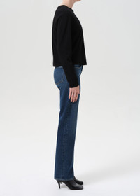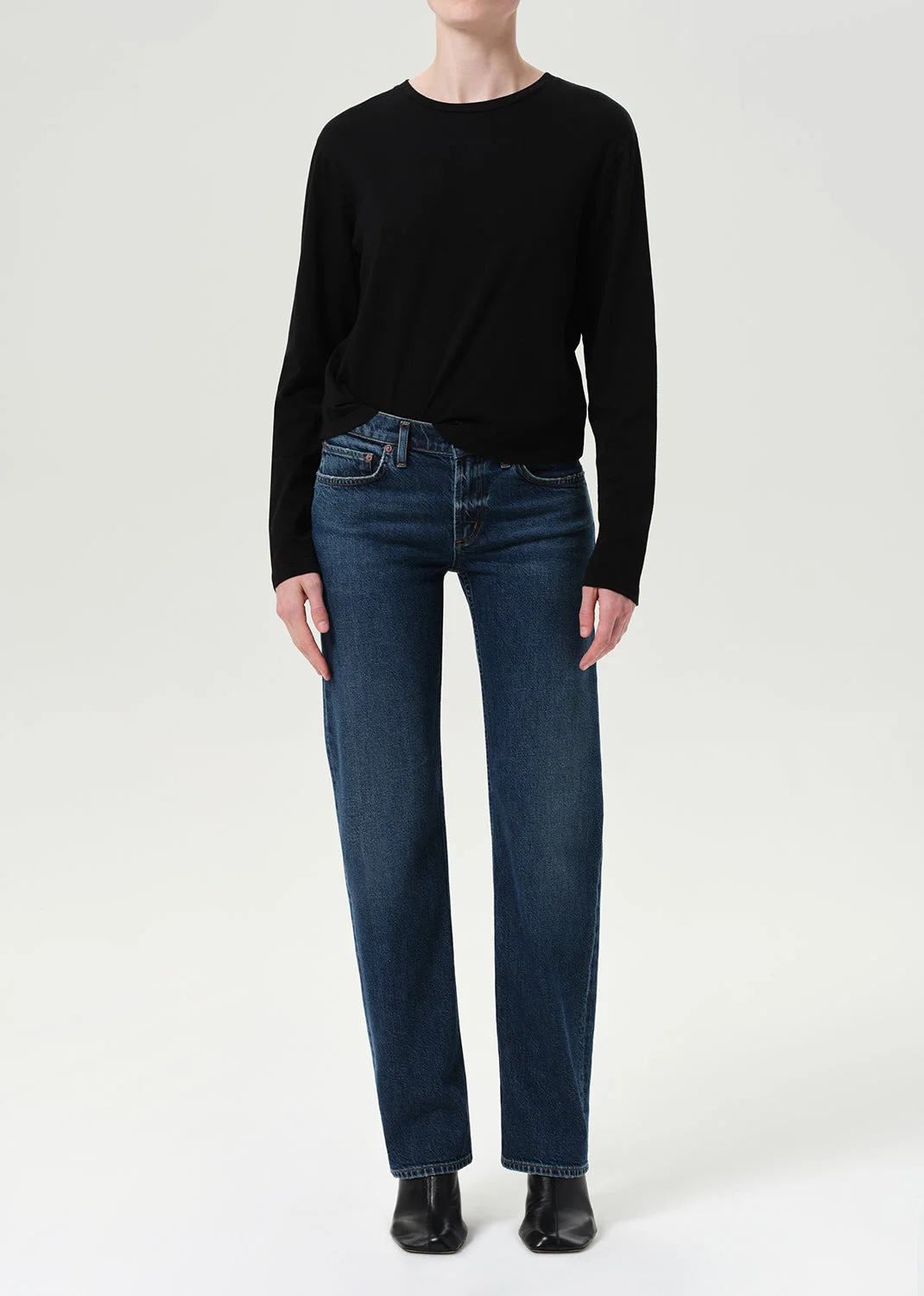 A streamlined staple with an early-aughts edge, the Low Rise Slim is cut with a close fit through the leg and a low-rise waist. This version, offered in a versatile 29" inseam, is crafted from medium washed indigo comfort stretch denim with subtle fading and marbling. Soft to the touch and designed to hold its shape, it styles effortlessly with everything from classic shirting to oversized outerwear. For a longer inseam, shop the Low Rise Slim Looks Like: Medium washed indigo denim pant Feels Like: Comfort stretch, lightweight denim with a super soft hand to hold its shape MORE DETAILS Closure: Zipper Fly Rise: 9 1/4" Inseam: 29" Leg Opening: 16 1/2" Model is 5'10" and is wearing a Size 27 Fabric: 99% Regenerative Cotton, 1% Elastane Care Instructions: Machine wash cold inside out with like colors. Do not bleach. Tumble dry low. Made in Turkey with imported materials A285B-1858-SLICK