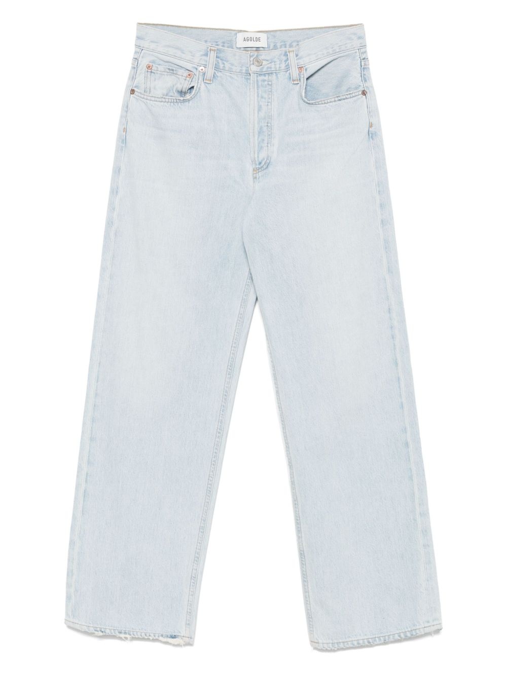 Low Slung jeans Highlights - Light blue - Concealed fly and button fastening - Belt loops - Classic five pockets Made in United States Composition Regenerative Cotton 100% SIZE & FIT Model measurements Height 5 ft 9 in(1.75 m) Bust/Chest 31.88 in(81 cm) Hips 34.64 in(88 cm) Waist 24.01 in(61 cm) FittingInformation Designed with a wide leg cut, these jeans allow for a close fit at the waist and offer a loose and roomy fit over the leg Sturdy and hard-wearing, this denim piece offers no stretch
