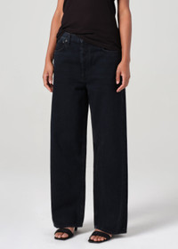 The Low Slung Baggy is designed for an effortless yet ultra-flattering fit, featuring a relaxed, upsized silhouette that sits low on the hips and falls into a directional baggy straight leg. Crafted from a blend of regenerative and recycled cotton, it offers both structure and an elegant drape. The dark indigo denim is finished with fading and light whiskering, giving it a naturally worn-in feel. Style it with a fitted tee and boots for a balanced silhouette or pair with an oversized blazer for a modern take on relaxed tailoring This style is meant to be worn low on the hip and intended to be oversize. Size down for a closer fit. Looks Like: Dark indigo denim with fading and light whiskering Feels Like: Rigid, non stretch denim cotton blend made with a soft hand feel MORE DETAILS Closure: Button Fly Rise: 12 1/2" Inseam: 30 1/2" Leg Opening: 21" Model is 5'10" and is wearing a Size 27 Fabric: 100% Regenerative Cotton Care Instructions: Machine wash cold inside out with like colors. Do not bleach. Tumble dry low. Made in Turkey with imported materials A9079B-1604-CRSHD