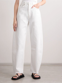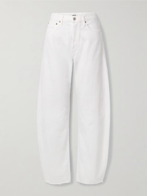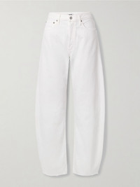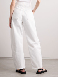 AGOLDE's 'Luna' jeans are designed with wide barrel legs. Made from white cotton denim, they sit high on the waist and have raw hems. Wear yours with a tank and ankle boots. Size & Fit - Fits true to size, take your normal size - High-rise, cut for a wide-leg fit - Mid-weight, non-stretchy fabric - Size 26 jeans have an inside leg of 30”/ 75cm - Model is 180cm/ 5’11” and is wearing a size 26 Details & Care - White denim - Partially concealed button fastenings along front - 100% regenerative cotton - Machine wash - Designer wash: Element - This product has been made with regenerative cotton, supporting holistic farming practices that increase soil health, improve biodiversity and reduce carbon emissions
