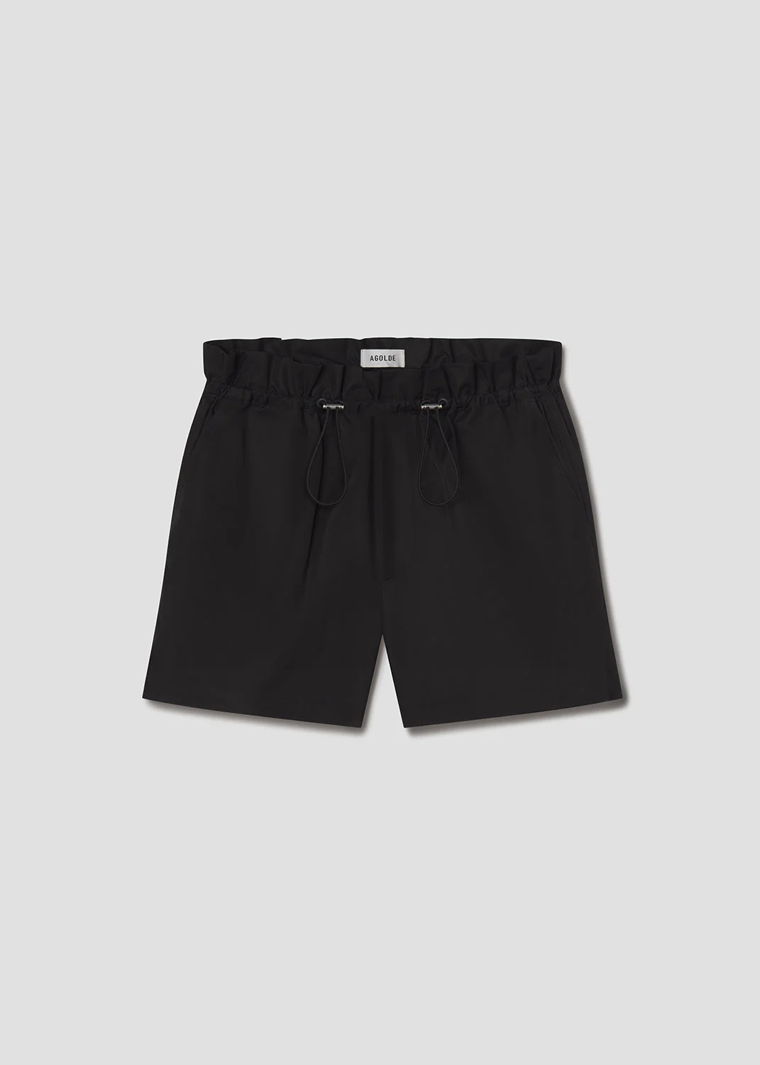 The Lydia Short features an easy, relaxed silhouette with a softly structured waistband and an adjustable drawcord closure for customizable comfort. Rendered in a true black nylon, it offers a sleek, modern look that pairs effortlessly with everyday essentials. Crafted from lightweight, breathable summer nylon, the fabric is cool to the touch, making it an ideal warm-weather staple. This fit is true to size. Looks Like: True black nylon short with drawcord closure Feels Like: Lightweight breathable cool to the touch nylon MORE DETAILS Closure: Drawstring Rise: 14" Inseam: 3" Leg Opening: 31" Model is 5'10" and is wearing a Size 27 Fabric: 55% Cotton, 45% Polyester Care Instructions: Machine wash cold inside out with like colors. Do not bleach. Tumble dry low. Made in USA with imported materials A9243-1815-BLK