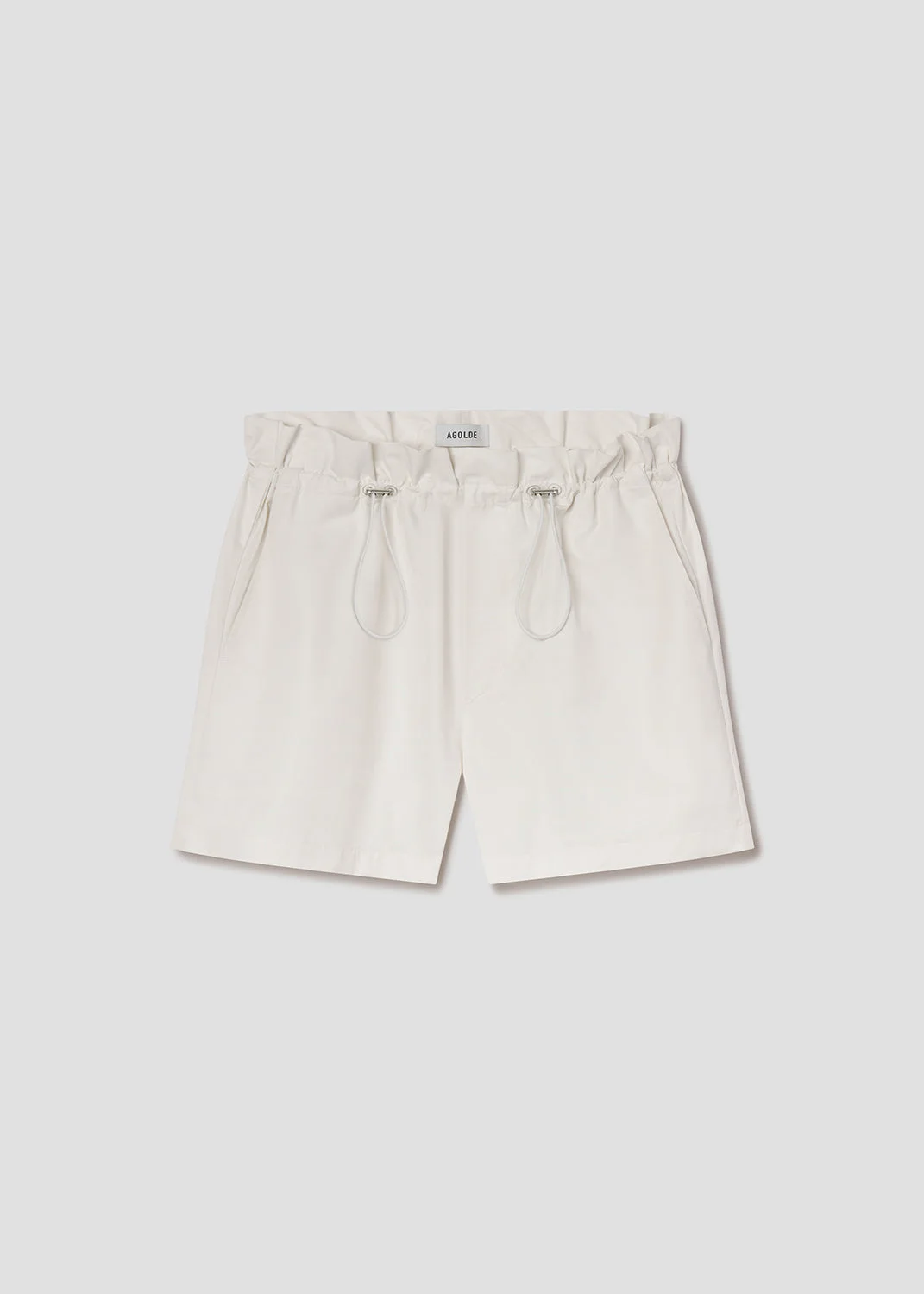 The Lydia Short is designed with an easy, relaxed shape and a softly structured waistband featuring an adjustable drawcord closure. Rendered in a creamy off-white chalk tone, it delivers a crisp, modern feel that pairs effortlessly with warm-weather staples. Crafted from lightweight, breathable summer nylon, the fabric is cool to the touch and moves with ease, making it an ideal piece for everyday comfort. This fit is true to size. Looks Like: Creamy off white nylon short with drawcord closure Feels Like: Lightweight breathable cool to the touch nylon MORE DETAILS Closure: Drawstring Rise: 14" Inseam: 3" Leg Opening: 31" Model is 5'10" and is wearing a Size 27 Fabric: 55% Cotton, 45% Polyester Care Instructions: Machine wash cold inside out with like colors. Do not bleach. Tumble dry low. Made in USA with imported materials A9243-1815-CLKW