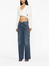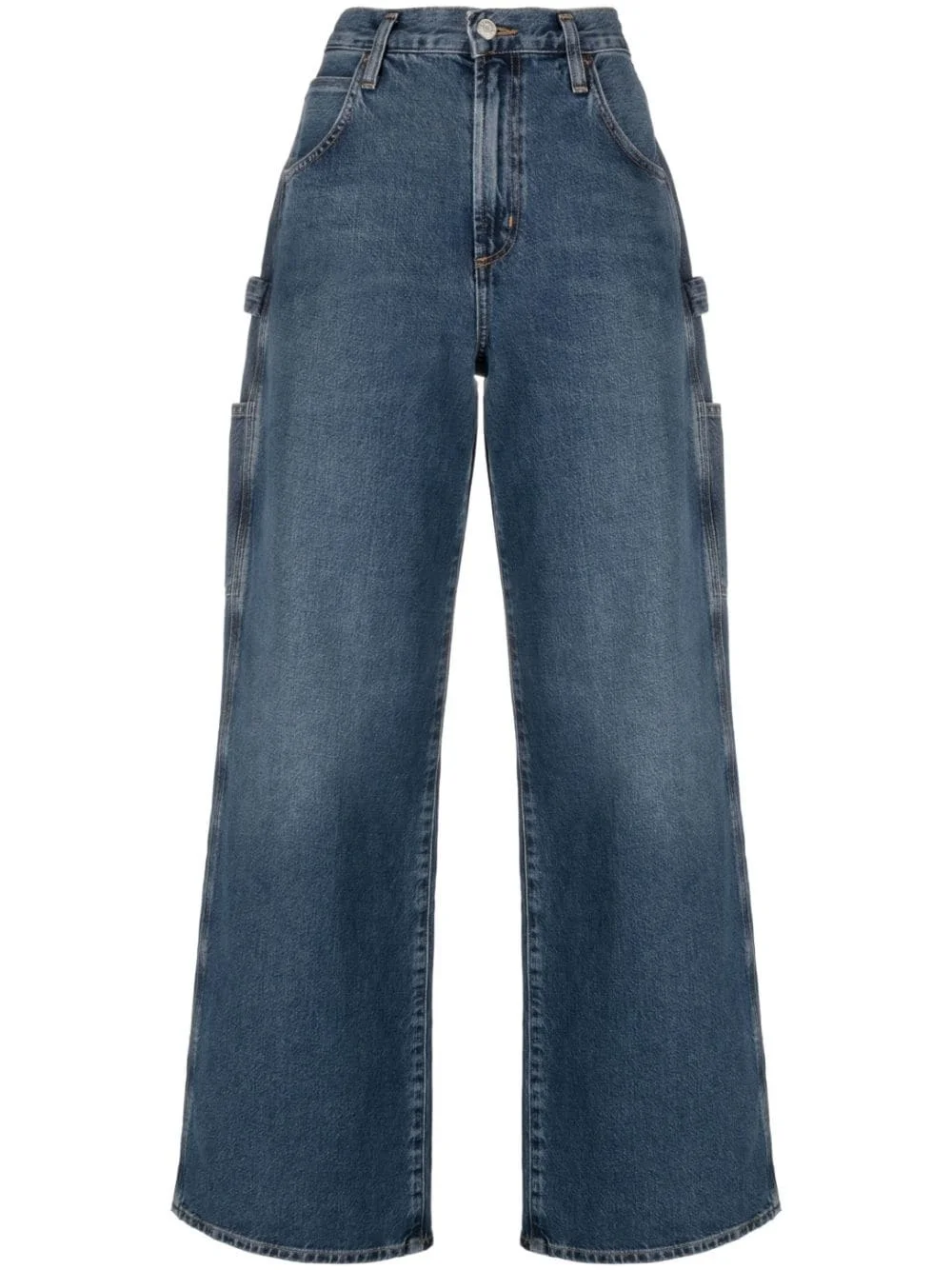 wide-leg jeans AGOLDE's relaxed, nonchalant attitude is expressed in these jeans through their slouchy, low-rise fit and laidback wide-leg silhouette. Highlights - Darkness blue - Organic cotton-lyocell blend - Front button fastening - Belt loops - Classic five pockets - Wide leg Imported Composition Organic Cotton 75%, Lyocell 25% SIZE & FIT Model measurements Height 5 ft 10 in(1.78 m) Bust/Chest 31.49 in(80 cm) Hips 35.03 in(89 cm) Waist 23.62 in(60 cm) Measurement FRONT RISE 12.2 in(31 cm) HIPS 40.15 in(102 cm) WAIST 29.92 in(76 cm) FittingInformation Designed for a straight-leg fit, these jeans allow for a close fit at the waist and an unrestricted and comfortable fit over the leg Constructed from stretch denim, this piece offers a stretch fit with durability This piece fits true to size – take your usual size