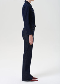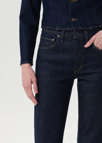 This mid-rise bootcut is designed to flatter—slim through the hip with a soft kick at the hem. Made from our archive comfort stretch denim, it combines the structure of rigid with a soft hand and just the right amount of give. Finished in a clean, true indigo rinse for a polished look. Style with a tonal denim top or crisp button-down for an effortless, head-to-toe moment. This fit is true to size. Looks Like: True rinsed indigo denim pant Feels Like: Comfort stretch, archive denim with a super soft hand for all day wearability MORE DETAILS Closure: Zipper Fly Rise: 11" Inseam: 33" Leg Opening: 20 3/4" Model is 5'10" and is wearing a Size 27 Fabric: 99% Regenerative Cotton, 1% Elastane Care Instructions: Machine wash cold inside out with like colors. Do not bleach. Tumble dry low. Made in Turkey with imported materials A265B-1854-RESS