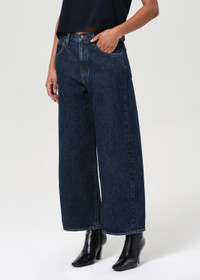 The Low Curve Jean Crop features a relaxed, tapered leg and slouchy fit that sits low on the hips, now with a slightly cropped 27.5" inseam. Crafted from rigid, non-stretch denim, this dark-to-medium indigo wash is finished with subtle marbling for added depth. Style with a slim tee or oversized jacket. Perfect for Petite frames. This fit is true to size. For a longer inseam, shop the Low Curve Jean Looks Like: Dark to medium indigio denim pant Feels Like: Rigid, non stretch cotton denim with a soft hand for all day wearability MORE DETAILS Closure: Zipper Fly Rise: 11 3/4" Inseam: 27 1/2" Leg Opening: 21" Model is 5'10" and is wearing a Size 27 Fabric: 100% Regenerative Cotton Care Instructions: Machine wash cold inside out with like colors. Do not bleach. Tumble dry low. Made in Turkey with imported materials A283-1206-PNDLM