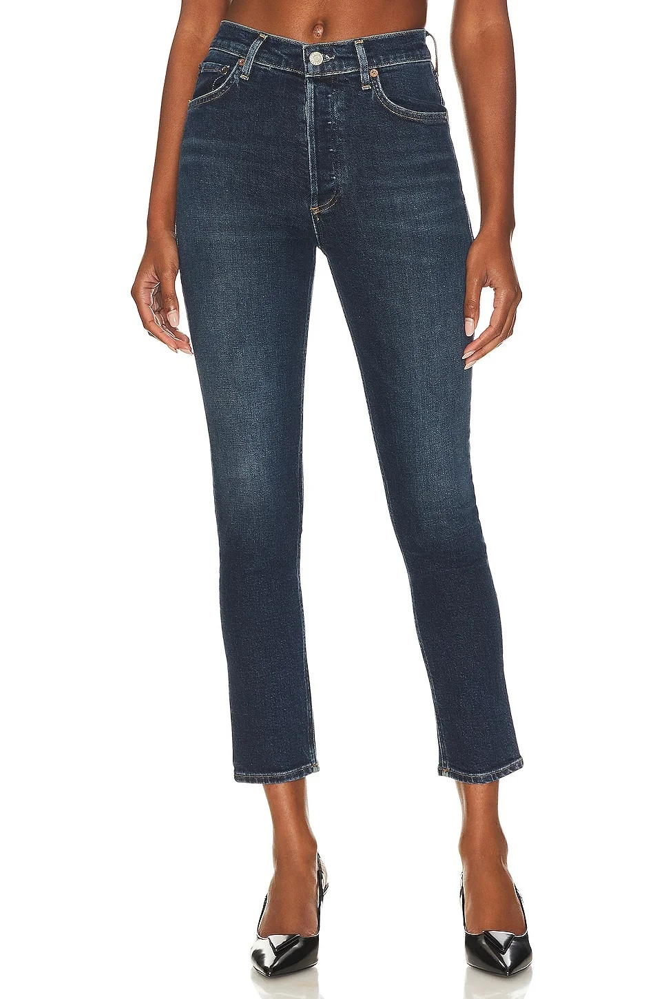 - Upgrade your denim game with AGOLDE's Nico High Rise Slim in Ovation - Elevate your style with a dark wash, button fly, and slim-fit design - Perfect for a chic, cropped look - .90% cotton 6% recycled cotton 3% polyester 1% elastane - Made in Turkey - Machine wash - Button fly.5-pocket styling - Light fading and whiskering.14" at the knee narrows to 10" at the leg opening - Revolve Style No. AGOL-WJ517 - Manufacturer Style No. A093f-1256