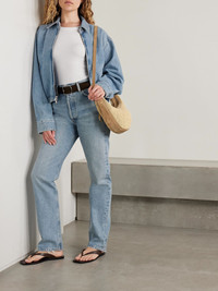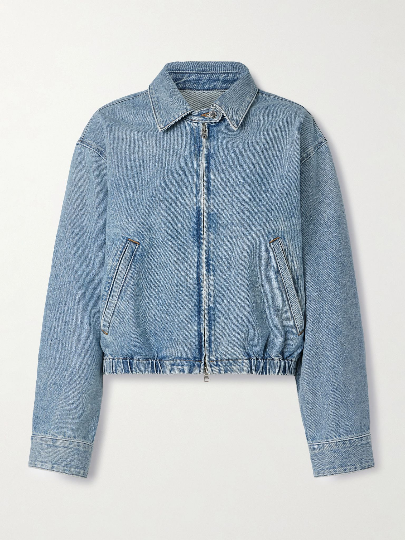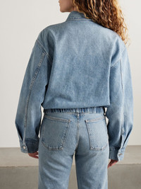 AGOLDE's jacket is modeled on traditional bomber styles. Cut from faded light-blue denim, it has a relaxed shape with dropped shoulders and an elasticated hem. Lower-Impact Materials. This product is made using at least 50% lower-impact materials or ingredients. Find out more about our NET SUSTAIN criteria here. Size & Fit - Fits true to size, take your normal size - Intended for a relaxed fit - Elasticated at the hem - Dropped shoulder seam - Mid-weight, non-stretchy denim - Model is 175cm/ 5'9" and is wearing a size Small Details & Care - Light-blue denim - Button and two-way zip fastening at front - 100% cotton - Machine wash - Designer wash: Space - This product has been made with regenerative cotton, supporting holistic farming practices that increase soil health, improve biodiversity and reduce carbon emissions