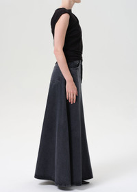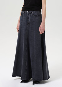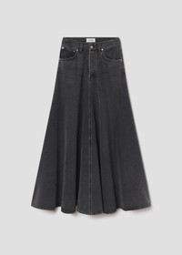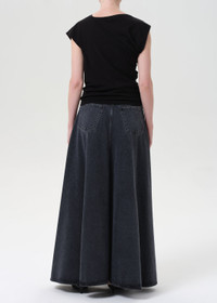 The Odin Skirt is a full-length, exaggerated silhouette offered in a medium washed-out black. Cut from weightless, non-stretch denim with a soft hand, it drapes effortlessly for a directional take on classic denim. Style with a ribbed tank or oversized jacket to balance the proportions. This fit is true to size. Looks Like: Medium washed out black full length exaggerated denim skirt Feels Like: Non stretch, weightless denim washed down for a super soft feel MORE DETAILS Closure: Button Fly Waist: 30 1/2" Hip: 42 1/2" Length: 41" Model is 5'10" and is wearing a Size 27 Fabric: 100% Conventional Cotton Care Instructions: Machine wash cold inside out with like colors. Do not bleach. Tumble dry low. Made in USA with imported materials A3069-1818-SYBL