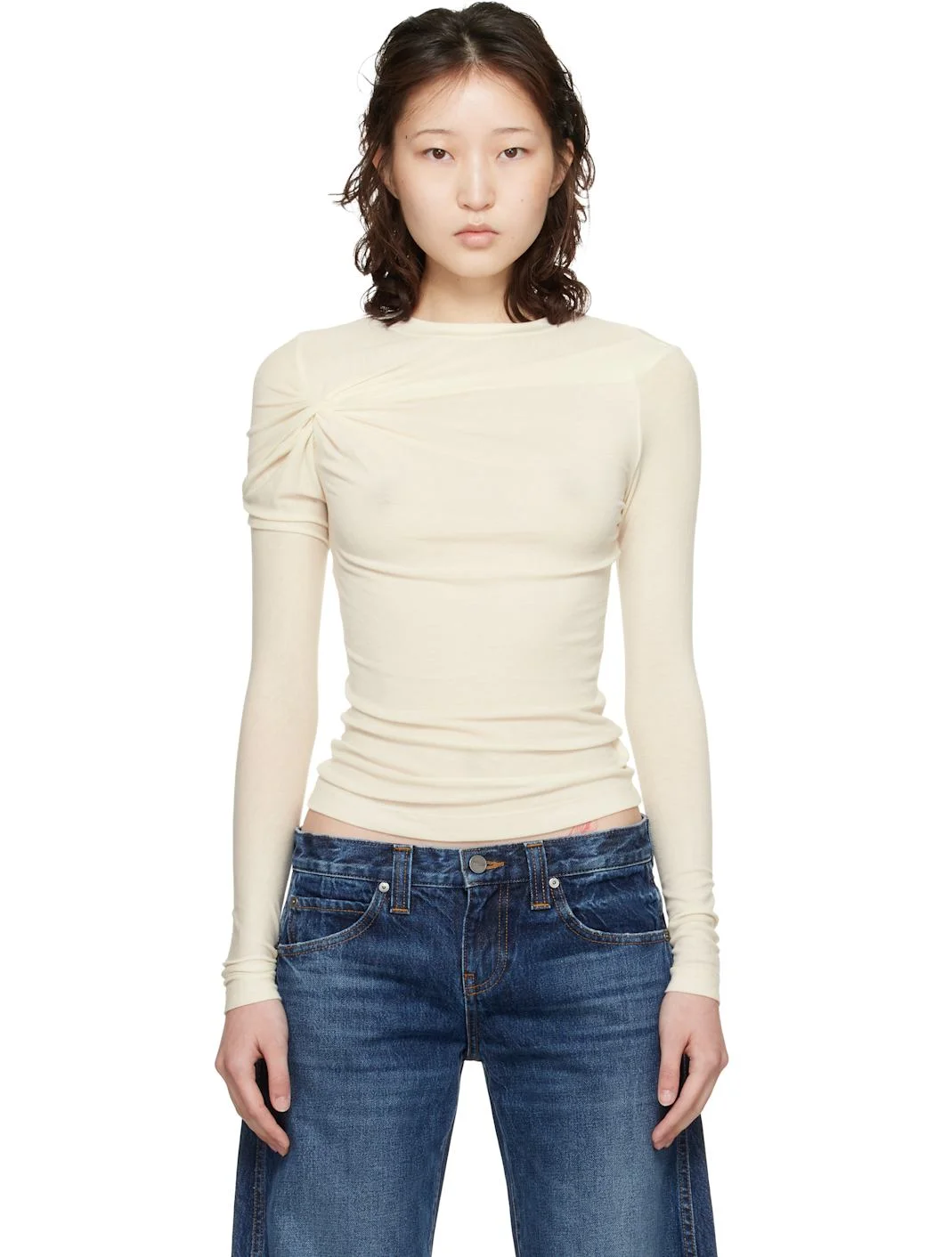 Semi-sheer stretch lyocell jersey T-shirt. · Rib-knit crewneck · Twisted detailing at front Supplier color: Oat milk 94% lyocell, 6% spandex. Made in United States 261214F110018