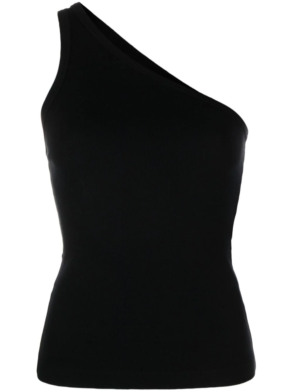 one-shoulder tank top Highlights - Black - Stretch-design - One-shoulder - Sleeveless - Slim cut - Straight hem Made in United States Composition Micromodal 48%, Supima Cotton 46%, Spandex/Elastane 6% SIZE & FIT Model measurements Height 5 ft 10 in(1.78 m) Bust/Chest 29.92 in(76 cm) Hips 34.64 in(88 cm) Waist 23.62 in(60 cm) FittingInformation Designed for a close fit throughout Made from a midweight stretch fabric, this piece offers elasticity and flexibility when worn This piece fits true to size – take your usual size Washing instructions Machine Wash