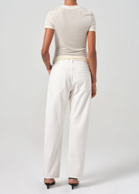 Cue the nostalgia. This 90's-inspired fit, crafted from crisp white denim and regenerative cotton, offers a relaxed mid-rise, an eased fit through the hips, and a loose, straight leg. For styling, pair with a simple beige or white top and neutral sandals for a clean, effortless look. For the shorter inseam, shop the 90's Crop. This fit is intended to be relaxed. Size down for a higher, closer fit. Looks Like: Eggshell warm white clean denim Feels Like: Rigid, non stretch denim made with an authentic, soft hand feel MORE DETAILS Closure: Button Fly Rise: 12 3/4" Inseam: 29" Leg Opening: 16" Model is 5'10" and is wearing a Size 27 Fabric: 100% Organic Cotton Care Instructions: Machine wash cold inside out with like colors. Do not bleach. Tumble dry low. Made in Turkey with imported materials A069I-1183_FRTCO