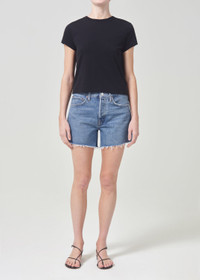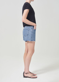 Inspired by our iconic Parker Short. Now designed with a slightly longer inseam for a more practical every day short. Featuring a relaxed high-rise with just enough room in the thighs for all day comfort. Crafted in our signature zero stretch cotton - this pair will only get softer with each wash while keeping its vintage appeal. For the shorter inseam, shop our Parker Short. This fit is true to size. Looks Like: Medium indigo with fading, whiskering, and a raw hem Feels Like: Washed down, non-stretch cotton with a smooth, soft hand MORE DETAILS Closure: Button Fly Rise: 11 1/4" Inseam: 4 1/2" Leg Opening: 24 1/2" Model is 5'10" and is wearing a Size 27 Fabric: 100% Cotton Care Instructions: Machine wash cold inside out with like colors. Do not bleach. Tumble dry low. Made in Turkey with imported materials A9010-1142_SKYWV