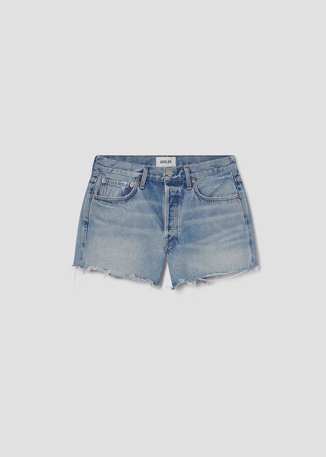 The fan-favorite Parker Short features a flattering high-rise and a relaxed silhouette through the hips, designed to feel perfectly broken in from the very first wear. Finished in a light worn-in indigo wash, this pair captures the effortless character of true vintage denim. Crafted from rigid non stretch 100% regenerative cotton denim with a soft hand feel, they hold their structured shape while offering comfortable all-day wearability. Easy and versatile, the Parker Short pairs seamlessly with everything from simple tanks to breezy blouses. For a longer inseam, shop the Parker Long. This fit is true to size. Looks Like: Light worn in indigo denim short Feels Like: Rigid, non stretch cotton denim with a soft hand for all day wearability MORE DETAILS Closure: Button Fly Rise: 11 1/4" Inseam: 2 1/2" Leg Opening: 24 1/2" Model is 5'10" and is wearing a Size 27 Fabric: 100% Regenerative Cotton Care Instructions: Machine wash cold inside out with like colors. Do not bleach. Tumble dry low. Made in Turkey with imported materials A026E-1371-PSSG