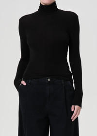 A foundation piece in any wardrobe, the Pascale Turtleneck features a streamlined silhouette with a soft, close fit. Pair it with denim or tailored separates for endless styling versatility. This fit is true to size. Looks Like: True black long sleeve turtleneck Feels Like: Ultra-soft, lightweight fine needle baby rib MORE DETAILS Body Length: 24 1/2" Shoulder to Shoulder: 13 1/2" Sleeve Length: 25" Model is 5'10" and wearing a size Small Fabric: 94% Lyocell, 6% Spandex Care Instructions: Machine wash cold inside out with like colors. Do not bleach. Tumble dry low. Made in USA with imported materials A7238-1618-BLK