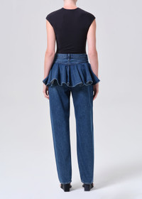 A mid-rise straight leg with sculptural peplum detailing at the hip, the Peplum Jean merges classic denim structure with a bold, fashion-forward twist. Designed in a dark flat indigo wash and finished with a layered peplum skirt, this standout silhouette adds volume, movement, and directional edge to any look. Crafted from non stretch, weightless regenerative cotton denim washed down for a super soft feel, it balances crisp shape with effortless comfort. This fit is true to size. Looks Like: Dark flat indigo denim pant with layered peplum skirt Feels Like: Non stretch, weightless denim washed down for a super soft feel MORE DETAILS Closure: Button Fly Rise: 12 1/4" Inseam: 31" Leg Opening: 17" Model is 5'10" and is wearing a Size 27 Fabric: 100% Regenerative Cotton Care Instructions: Machine wash cold inside out with like colors. Do not bleach. Tumble dry low. Made in Turkey with imported materials A315-1604-PEAK