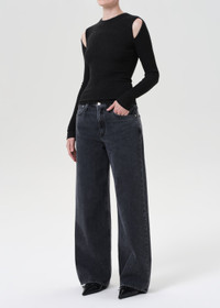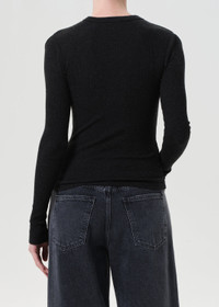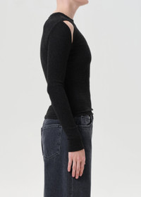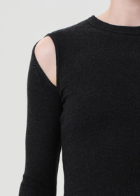 The Pierce Tee is a long sleeve, body-hugging silhouette with shoulder cutouts for a subtle edge. Wear it tucked into high-rise denim or layered under a jacket. This fit is true to size. Looks Like: Heathered black long sleeve tee with cut outs at the shoulder Feels Like: Midweight intermingle chunky rib that hugs the bod MORE DETAILS Body Length: 24 3/4" Shoulder to Shoulder: 13 1/2" Sleeve Length: 26 1/8" Model is 5'10" and wearing a size Small Fabric: 50% Polyester, 32% Cotton, 18% Rayon Care Instructions: Machine wash cold. Made in USA with imported materials A7386-1352-KNISS
