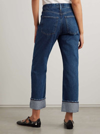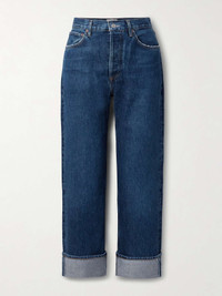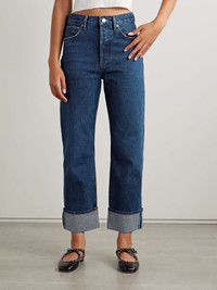 AGOLDE's 'Fran' jeans are made from cotton that's created using regenerative farming techniques. Designed in the brand's 'Enamour' wash, this low-rise pair has straight legs with cuffed hems that can unfolded if you prefer more length. Size & Fit - Fits true to size, take your normal size - Low-rise, cut for a straight-leg fit - Mid-weight, non-stretchy denim - Size 26 jeans have an inside leg of 26.7"/ 68cm - Jeans sizing Details & Care - Dark-blue denim - Partially concealed button fastenings along front - 100% cotton - Machine wash - Designer wash: Enamour