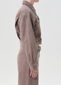 The Radley Jacket is a cropped take on a classic denim trucker—structured through the shoulders with a defined waist. Crafted in a dark dusty rose-toned rigid denim, it features a boxy fit and button front closure. Pair it with tonal denim or offset with crisp white layers. This fit is true to size. Looks Like: Dark dusty rose-toned denim jacket Feels Like: Rigid, non stretch cotton denim with a soft hand for all day wearability MORE DETAILS Body Length: 20" Shoulder to Shoulder: 20 5/8" Chest: 38" Sweep: 34" Sleeve Length: 23 1/4" Model is 5'10" and wearing a size Small Fabric: 100% Regenerative Cotton Care Instructions: Machine wash cold inside out with like colors. Do not bleach. Tumble dry low. Made in Turkey with imported materials A5106-1183-CRMC