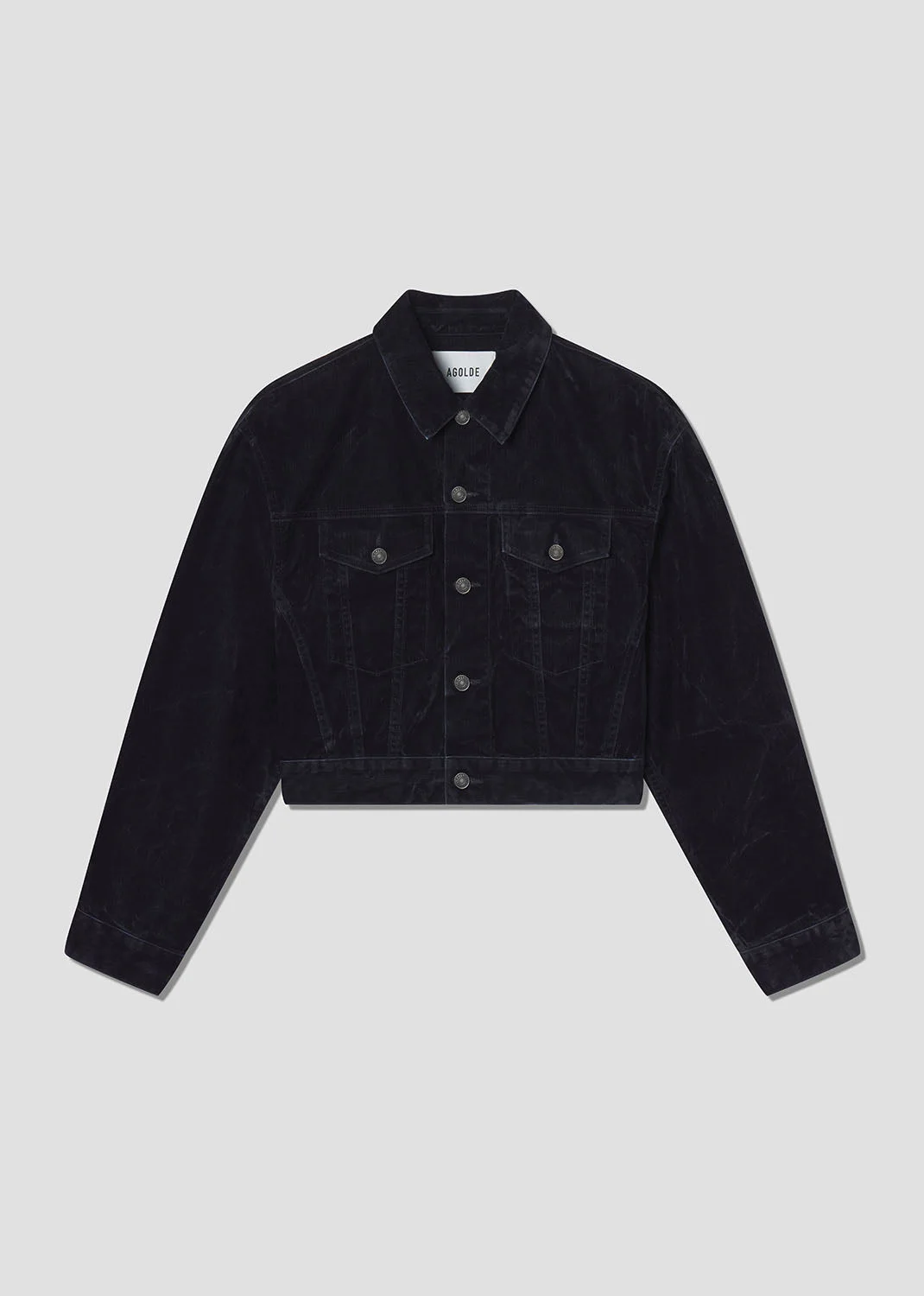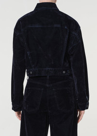 Multi-dimensional deep navy velvet jacket with a cinched waist for a subtle, sculpted shape. Crafted from plush, textured velvet, it has a refined yet relaxed fit that works effortlessly over layering pieces or a simple tee. This fit is true to size. Looks Like: Luxurious multi-dimensional dark deep navy velvet jacket with cinch at the waist Feels Like: Plush yet textured super soft velvet MORE DETAILS Body Length: 20" Shoulder to Shoulder: 20 5/8" Chest: 38" Sweep: 34" Sleeve Length: 23 1/4" Model is 5'10" and wearing a size Small Fabric: 84% Cotton, 16% Viscose Care Instructions: Machine wash cold inside out with like colors. Do not bleach. Tumble dry low. Made in Turkey with imported materials A5115-1884-BLUCR
