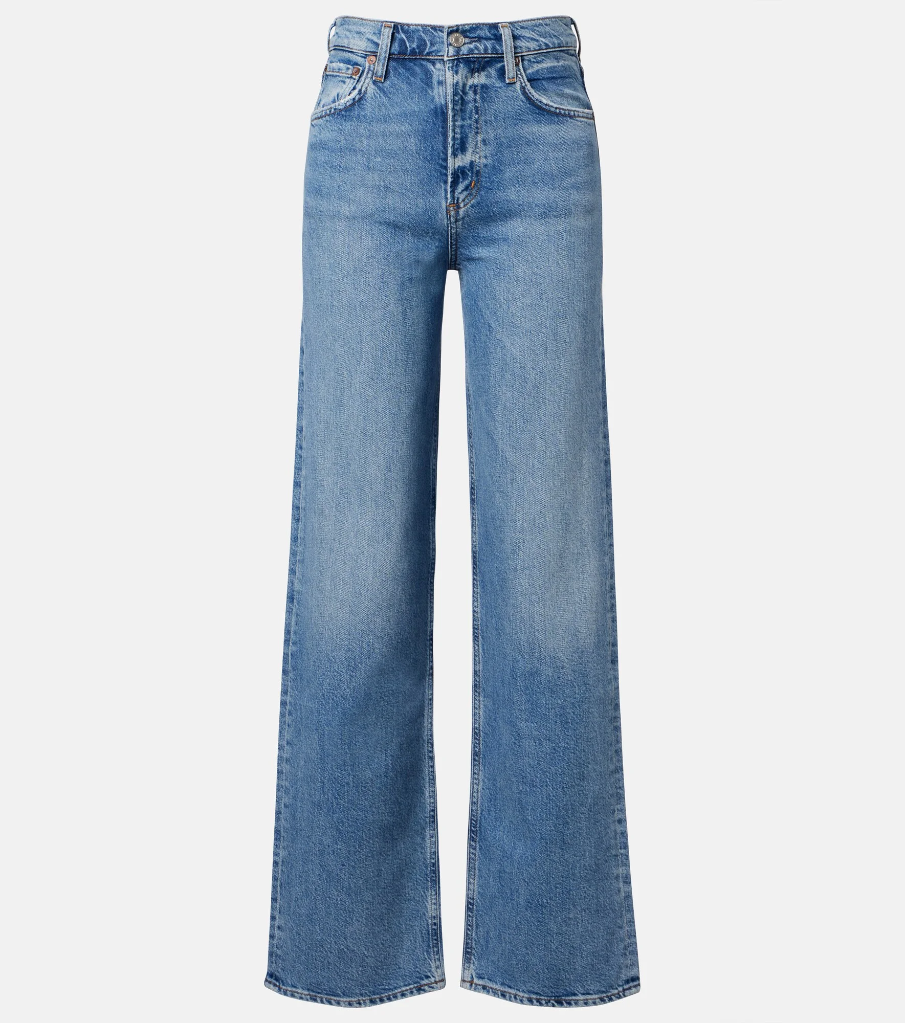 Setting the modern denim standard, every Agolde design is crafted from premium fabric and fit-tested. The Ren 32 jeans are shaped to a relaxed, wide-leg silhouette. Product Details - Material: 99% cotton (recycled), 1% elastane - Care instructions: machine wash cold - Made in Turkey - Color: blue - Designer color name: Measure(Md Wsh Ind -Finished) - Closure: zipper fly, button fastening - Belt loops - Pockets: five pockets - Item number: P01184096 Size & Fit - True to size - Slightly stretchy fabric - Straight leg - High-rise - The model seen in the picture is 178cm-5'10" and wearing a size 27