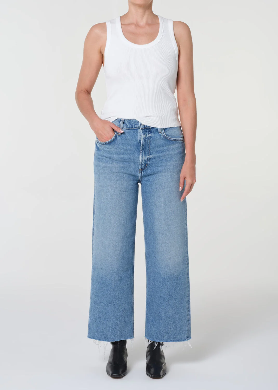 The Ren Jean is designed with a flattering high-rise waist, a relaxed fit through the hips, and finished with a wide leg silhouette. Now in a petite inseam of 25". Pair with a sleek tank or bodysuit. This fit is true to size. For a longer inseam, shop the Ren Jean Looks Like: Light to medium vintage indigo denim pant Feels Like: Comfort stretch, archive denim with a super soft hand for all day wearability MORE DETAILS Closure: Zipper Fly Rise: 12" Inseam: 25" Leg Opening: 19 1/2" Model is 5'3" and is wearing a Size 27 Fabric: 99% Regenerative Cotton, 1% Elastane Care Instructions: Machine wash cold inside out with like colors. Do not bleach. Tumble dry low. Made in Turkey with imported materials A214-1854-ORM