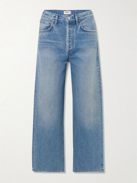AGOLDE's 'Ren' jeans will soon become your go-to pair for casual days. Made from denim using an innovative 'Eco-Indigo' dye, they have a high-rise waist and wide legs. Half-tuck a tee into yours. Lower-Impact Materials. This product is made using at least 50% lower-impact materials or ingredients. Find out more about our NET SUSTAIN criteria here. Size & Fit - Fits true to size, take your normal size - High-rise, designed for a wide-leg fit - Mid-weight, non-stretchy fabric - Size 27 jeans have an inside leg of 27"/ 69cm - Model is 180cm/ 5'11" and is wearing a size 27 Model measurements: - Bust: 76cm/ 30" - Waist: 64cm/ 25" - Hip: 86cm/ 34" Details & Care - Blue denim - Partially concealed button fastenings along front - 100% cotton - Designer wash: Journey - This product has been made with regenerative cotton, supporting holistic farming practices that increase soil health, improve biodiversity and reduce carbon emissions