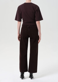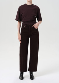The Ren features a flattering high rise and dramatic wide leg in a 25" inseam. This rigid, non-stretch denim is offered in a rich, dark grape wash with subtle brown undertones and marbling throughout. Style with a crisp tee or tonal knit for a bold, modern look. For a longer inseam, shop the Ren Jean Looks Like: Dark grape colored denim pant with brown undertones Feels Like: Rigid, non stretch cotton denim with a soft hand for all day wearability MORE DETAILS Closure: Button Fly Rise: 12" Inseam: 25" Leg Opening: 19 1/2" Model is 5'3" and is wearing a Size 27 Fabric: 100% Regenerative Cotton Care Instructions: Machine wash cold inside out with like colors. Do not bleach. Tumble dry low. Made in Turkey with imported materials A213-1183-SLBRR
