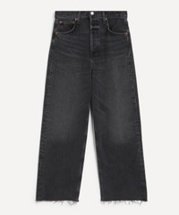DETAILS Ren jeans Non-stretch denim High-rise Wide-leg Rise: 12 1/4” Inseam: 27 1/2” Leg opening: 19 1/2” Button fly 5-pocket construction Light fading and whiskering detail Designer wash: Arcane SIZE & FIT Model is 179cm/5'10.5"; Chest: 81cm; Waist: 64cm; Hip: 89cm and wears a size 27 COMPOSITION & CARE 100% Cotton Machine wash cold inside-out with similar colours. Do not bleach. Tumble dry low