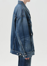 The Reworked Wayne n a vintage dark indigo wash that feels effortlessly lived-in. Cut with an intentionally oversized silhouette, this jacket is crafted from non-stretch, weightless denim and finished with subtle fading, grinding, and whiskering throughout. Wear it layered or buttoned up as a statement on its own. Looks Like: Oversized vintage dark indigo denim jacket with versatile button front closure Feels Like: Non stretch, weightless denim washed down for a super soft feel MORE DETAILS Body Length: 30" Shoulder to Shoulder: 25 3/8" Sleeve Length: 23" Model is 5'10" and wearing a size Small Fabric: 100% Cotton Care Instructions: Machine wash cold inside out with like colors. Do not bleach. Tumble dry low. Made in Turkey with imported materials A5045-1652-ILLUM