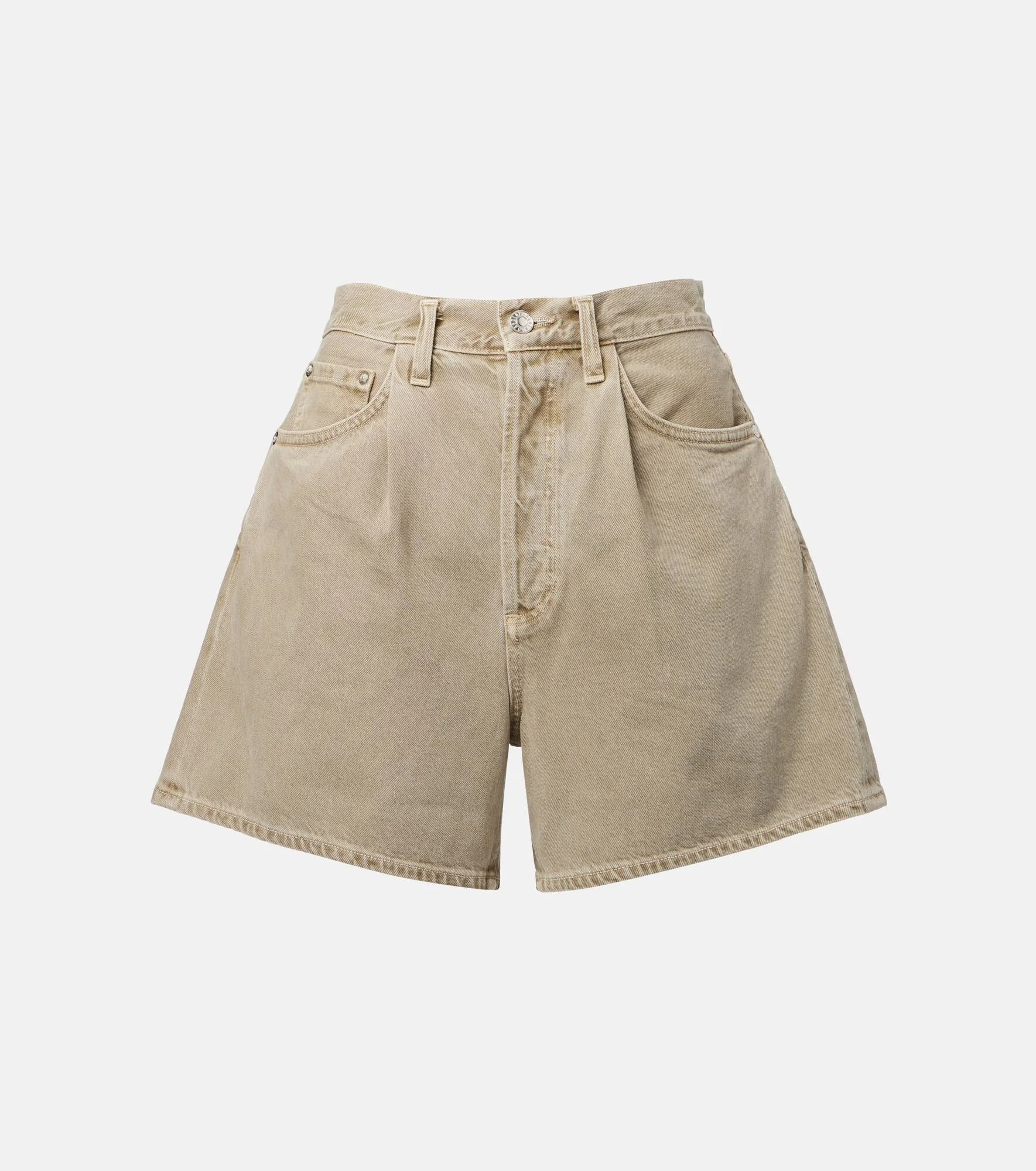 Setting the standard for modern denim, Agolde's designs are fit-tested and crafted from premium fabric. These non-stretch denim shorts feature a flattering mid-rise, wide-leg silhouette for an effortless silhouette. Product Details - Material: 100% cotton - Care instructions: machine wash cold - Made in the USA - Designer color name: Cholla - Item color: green - Closure: concealed button placket - Pockets: five pockets - Belt loops - Mid-rise - Item number: P01057518 Size & Fit - True to size - Non-stretchy fabric - Wide-leg - Mid-rise - The model seen in the picture is 178cm-5'10" and wearing a size 27