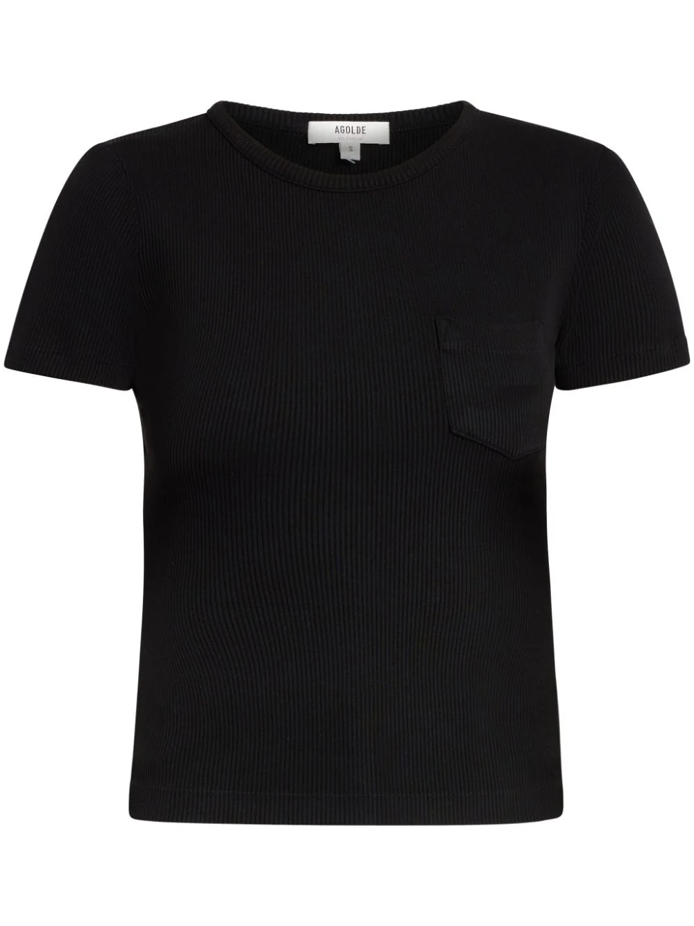 ribbed organic cotton-blend T-shirt Highlights - Black - Organic cotton blend - Fine ribbed - Round neck - Short sleeves - Chest patch pocket - Straight hem Made in United States Composition TENCEL™ Lyocell (LENZING) 49%, Organic Cotton 49%, Spandex/Elastane 2%