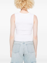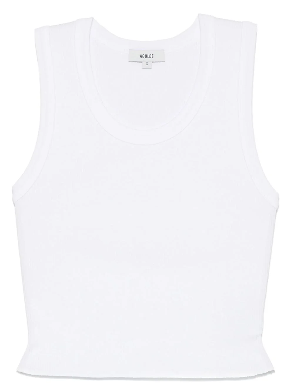 ribbed tank top Highlights - White - Crew neck - Sleeveless Made in United States Composition Organic Cotton 49%, Lyocell 49%, Spandex/Elastane 2% SIZE & FIT Model measurements Height 5 ft 9 in(1.75 m) Bust/Chest 34.64 in(88 cm) Hips 36.61 in(93 cm) Waist 26.37 in(67 cm) FittingInformation Designed for a close fit throughout Made from a midweight non-stretch fabric, this piece offers minimal elasticity when worn Washing instructions Hand Wash