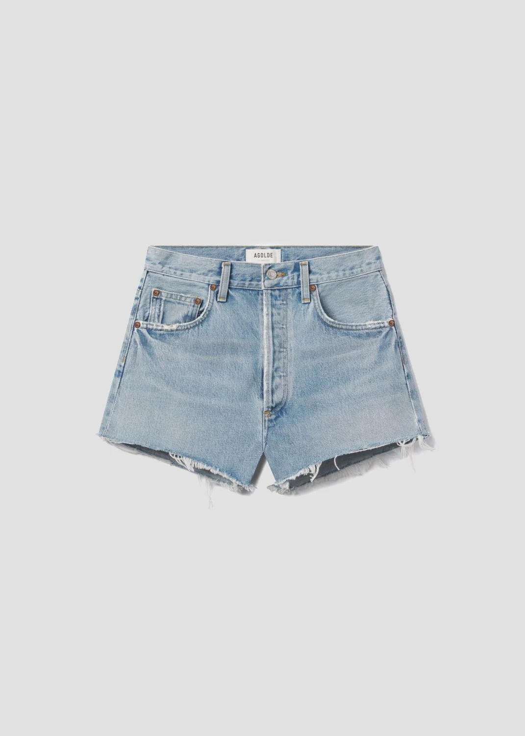 The Ridley Short in pale indigo offers a sleek, high-rise, contoured fit that flatters effortlessly. With a nod to vintage style and a modern edge, they pair perfectly with a lightweight linen shirt and sandals for a breezy summer look, or with a simple tank top and slip-on sneakers for a relaxed, casual vibe. Crafted from regenerative cotton non-stretch denim, they offer a structured, durable feel while embracing sustainability. This fit is true to size. Looks Like: Vintage marbled indigo denim short with whiskering and a cut hem Feels Like: Rigid, non stretch cotton denim with a soft hand for all day wearability MORE DETAILS Closure: Button Fly Rise: 12 1/8" Inseam: 2 1/2" Leg Opening: 25 1/2" Model is 5'10" and is wearing a Size 27 Fabric: 100% Regenerative Cotton Care Instructions: Machine wash cold inside out with like colors. Do not bleach. Tumble dry low. Made in Turkey with imported materials A9237-1206-CPTU