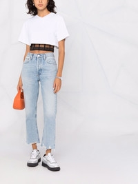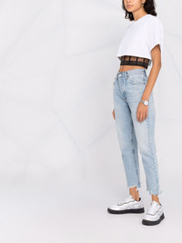 Riley cropped jeans Merging versatile design and sustainability, Agolde introduces these Riley jeans as part of their latest collection. Crafted from organic cotton, the pair sits high at the waist and features a raw-cut hem. Highlights - Soft blue - Organic cotton - Belt loops - Front button and zip fastening - Classic five pockets - Raw-cut hem Imported Composition Organic Cotton 100% SIZE & FIT Model measurements Height 5 ft 9 in(1.76 m) Bust/Chest 31.88 in(81 cm) Hips 35.43 in(90 cm) Waist 24.8 in(63 cm) Measurement FRONT RISE 11.41 in(29 cm) HIPS 38.58 in(98 cm) WAIST 30.7 in(78 cm) FittingInformation This piece fits true to size. We recommend you get your regular size Cut for a slim fit Made with a mid-weight non-stretch fabric Washing instructions Machine Wash