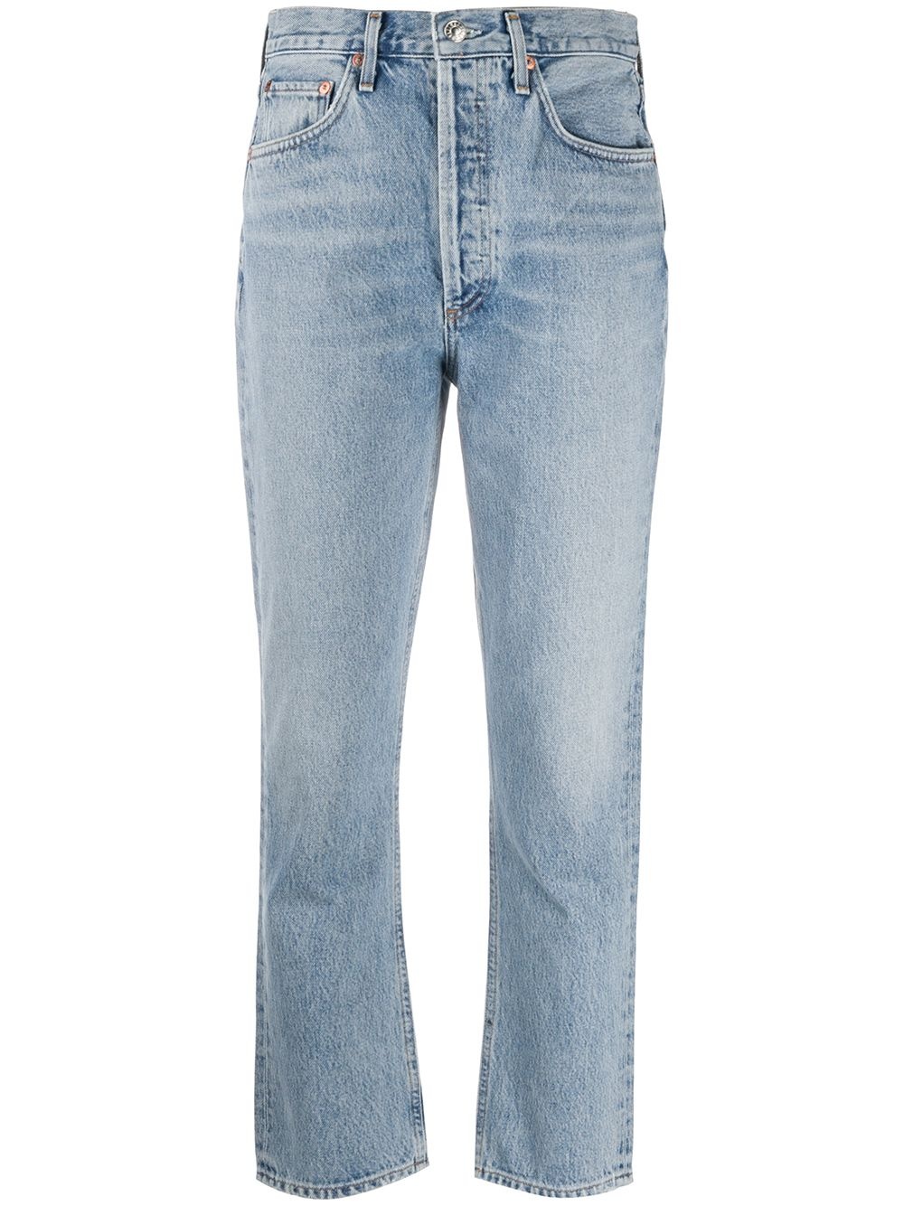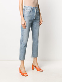 cropped skinny-fit jeans pale blue cotton washed cropped leg skinny fit front button fastening two diagonal pockets to the sides Made in United States Composition Cotton 100% SIZE & FIT Model measurements Height 5 ft 10 in(1.78 m) Bust/Chest 31.49 in(80 cm) Hips 36.22 in(92 cm) Waist 25.59 in(65 cm) Measurement FRONT RISE 12.59 in(32 cm) INSIDE LEG 29.13 in(74 cm) HIPS 39.76 in(101 cm) WAIST 31.88 in(81 cm) FittingInformation This piece fits true to size. We recommend you get your regular size Designed to be fitted at the waist and hips, loose over the leg Made with a mid-weight non-stretch fabric Measurement FRONT RISE 12.2 in(31 cm) INSIDE LEG 29.13 in(74 cm) HIPS 35.82 in(91 cm) WAIST 28.74 in(73 cm)