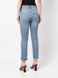 Riley high-waist jeans Known for its contemporary take on timeless denim silhouettes, AGOLDE adds a slight distress finish to this light blue iteration of the Riley high-waist jeans. Made from a blend of organic cotton, they're cut for a versatile straight leg. Made in United States Composition Organic Cotton 99%, Elastane 1% SIZE & FIT Model measurements Height 5 ft 10 in(1.78 m) Bust/Chest 33.46 in(85 cm) Hips 35.43 in(90 cm) Waist 24.4 in(62 cm)
